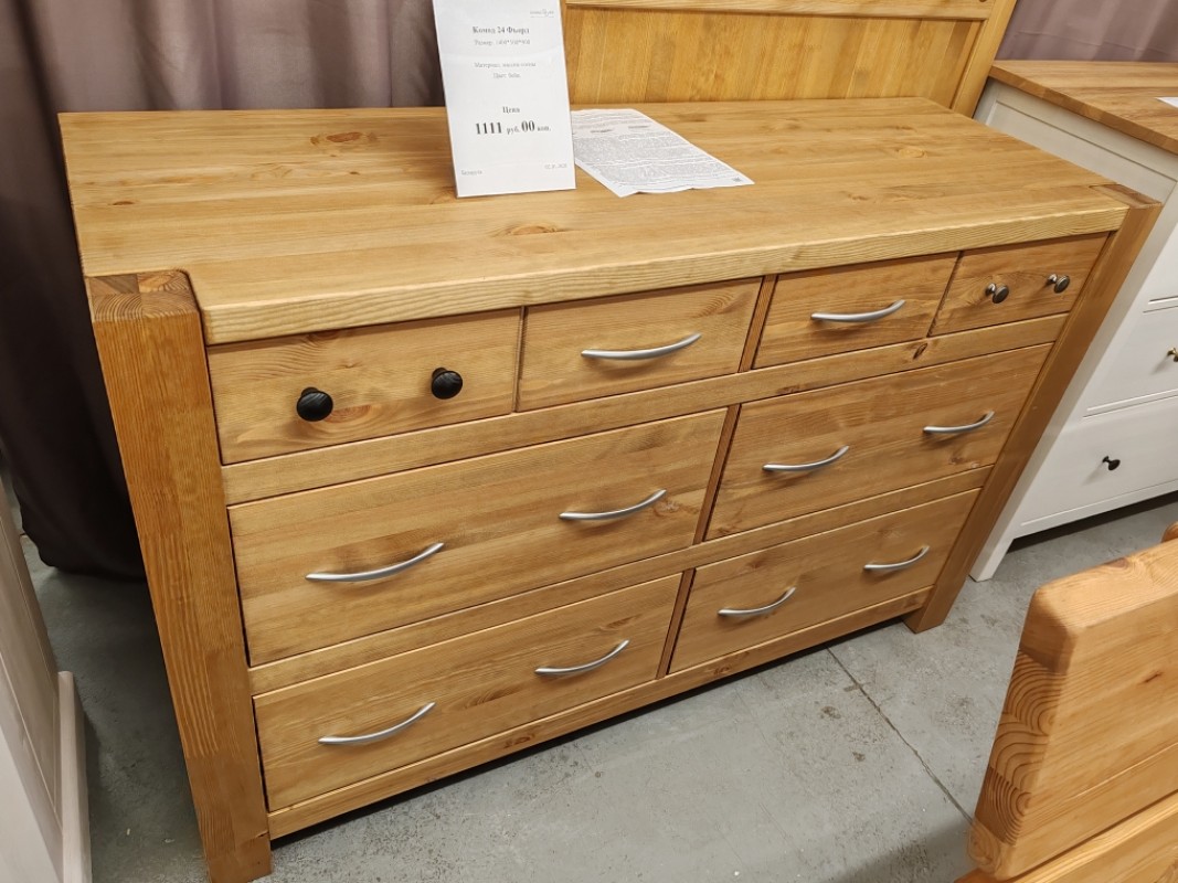 Этот стильный комод Фьорд 24, выполненный из массива сосны, и он покорит ваше сердце! Изготовлено из натурального дерева белорусской фирмы «ММЦ». Такую мебель покупают не «один раз»: при соблюдении правил эксплуатации она служит долгие годы.
