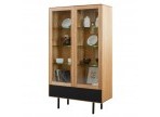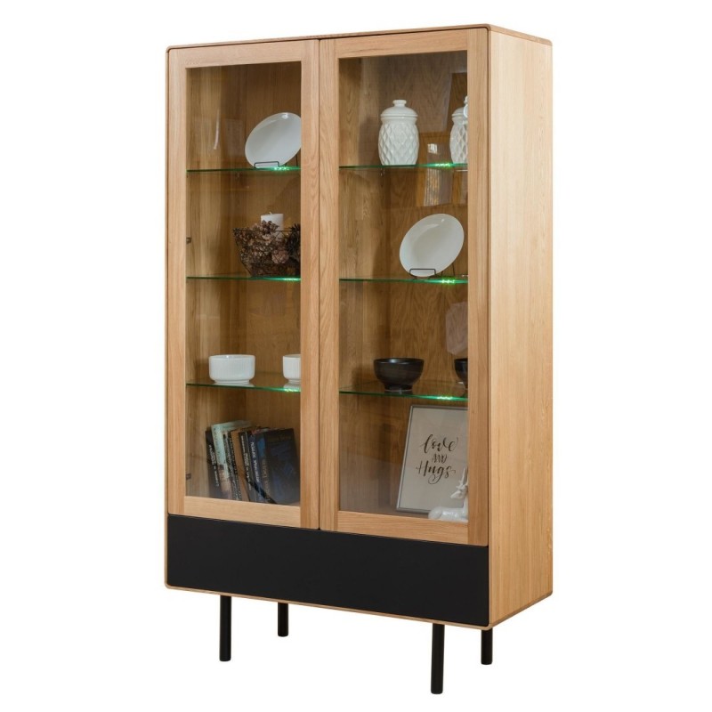 Витрина изготовлена из массива дуба. Оригинальный дизайн с черным фасадом - МДФ т.19 мм. отделанное эмалью на маленьких черных ножках сделает интерьер исключительным. Задняя стенка - шпонированная фанера. Для подсветки мебели мы используем светодиодную подсветку «КЛИПСА» на стеклянных полках.