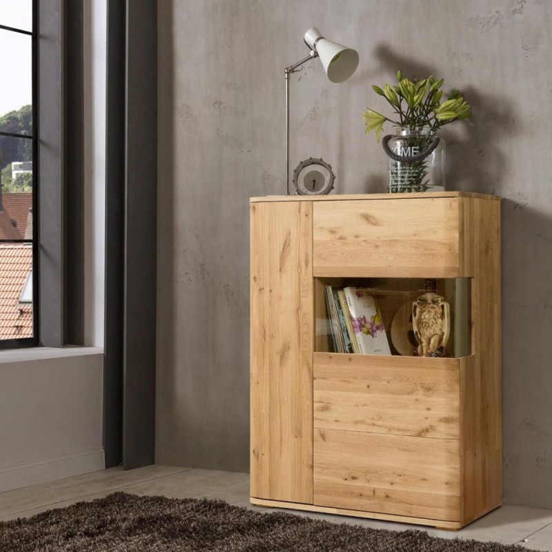 Шкаф с витриной Милтон-2 из массива дуба отлично подойдет в эко-интерьер. Брашировка подчеркнет индивидуальность Вашей мебели и станет притягательной для Вашего интерьера. Скруглённые углы тумбы придают формам мягкость.