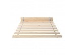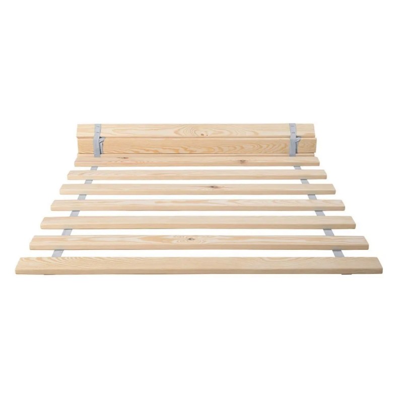 Настил для кровати необходим для того чтобы в корпусе кровати расположить матрац. Он располагается на опорных брусках, которые прикреплены на внутренней стороне царг кроватей. Настил для кровати изготовлен из массива сосны, берёзы или дуба – деревянные рейки скреплены между собой текстильной лентой, которые укладываются под матрац.