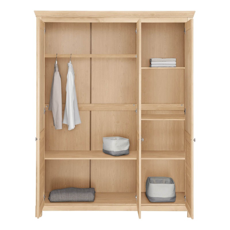 Шкаф для одежды "Рауна" 30 отличается лаконичными формами и стильным дизайном. За тремя распашными дверями находится пространство для одежды со штангой и отделение с 4 полками. Завершает картину эффектная фурнитура “под старину”.