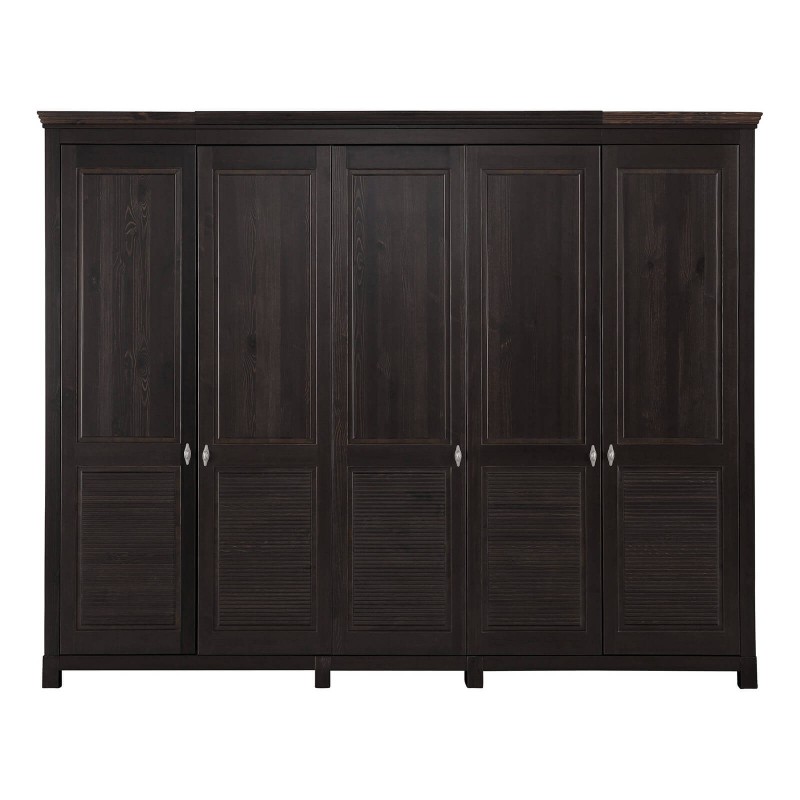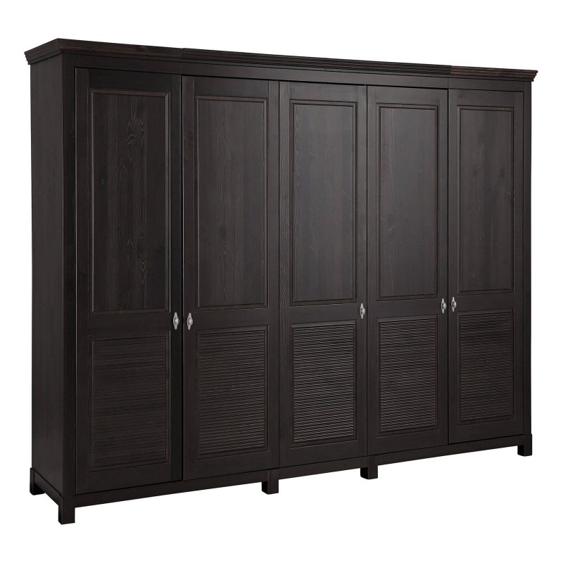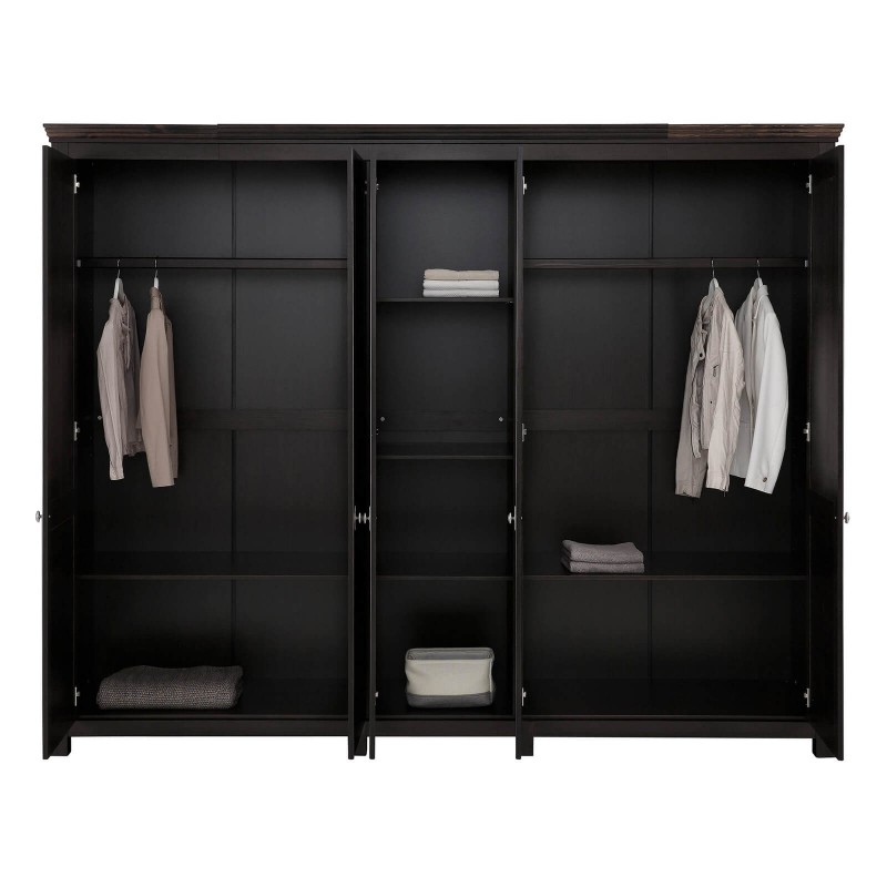 Этот шкаф из коллекции “Рауна” отлично подходит для небольших пространств, используя его максимально эффективно и визуально увеличивая. За пятью распашными дверями находятся два отделения для одежды со штангами и шесть полок для других вещей, включая головные уборы и обувь. Такое изделие удачно впишется в любой современный интерьер.
