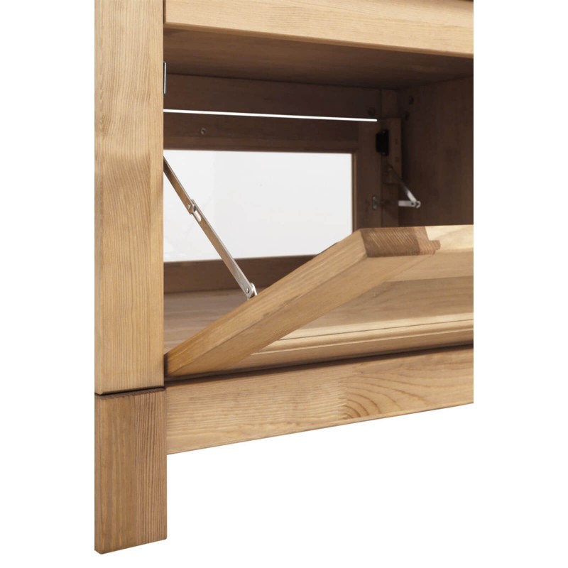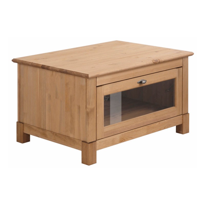 Изящный кофейный столик из коллекции “Рауна” хорошо подходит для современной гостиной. Он сделан из натурального дерева, благодаря чему имеет благородный вид, который подчеркивает уникальный древесный рисунок. Оснащен открывающейся секцией под столешницей со стеклянной витриной..