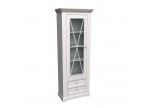 Шкаф имеет два выдвижных ящика на роликовых направляющих и одну стеклянную дверь, за которой находятся 3 полки. Возможно комплектация с шариковыми направляющими полного выката.