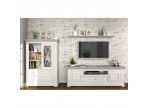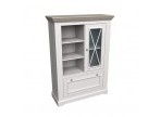 Тумба имеет нишу с полками, стеклянную дверь и откидную дверь.