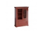 Тумба имеет нишу с полками, стеклянную дверь и откидную дверь.