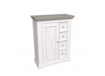 Тумба имеет четыре выдвижных ящика на роликовых направляющих и одну дверь, за которой находятся 2 деревянные полки. Возможно комплектация с шариковыми направляющими полного выката.