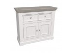 · Тумба имеет два выдвижных ящика на роликовых направляющих и две двери, за которой 2 деревянные полки.