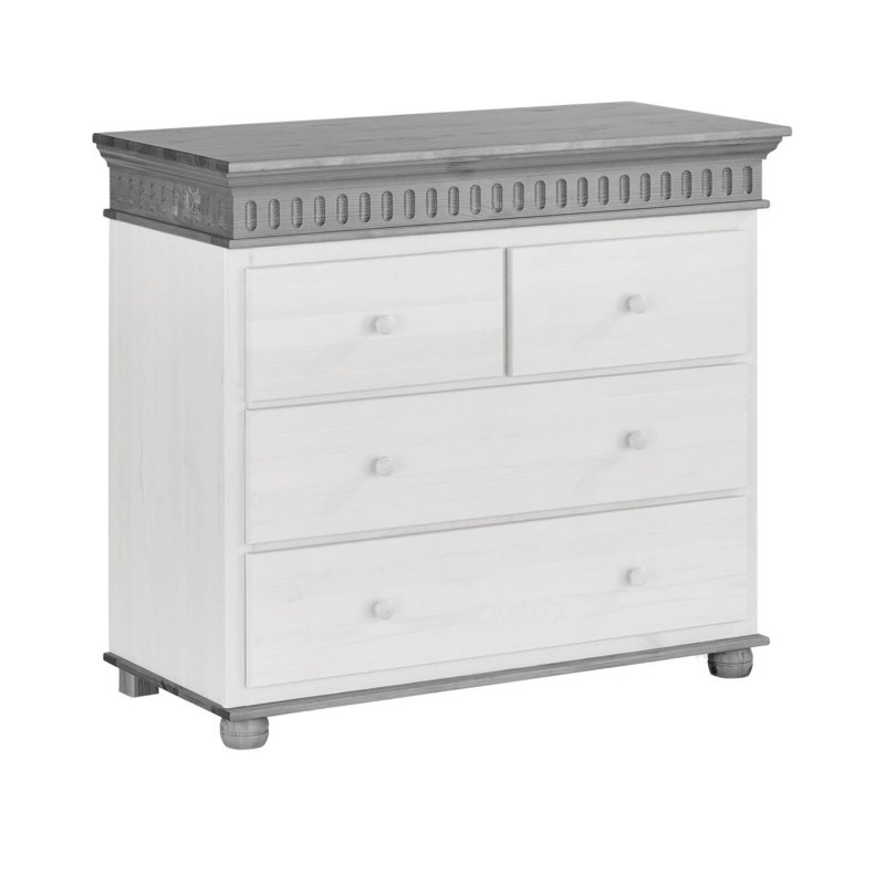 Комод для пеленания “Хельсинки” - практичное и привлекательное приобретение для молодой мамы. Оснащен четырьмя выдвижными ящиками, два из которых широкие, два - узкие. Изготовлен из натуральной древесины, что исключает появление у ребенка аллергии или других неприятных реакций.