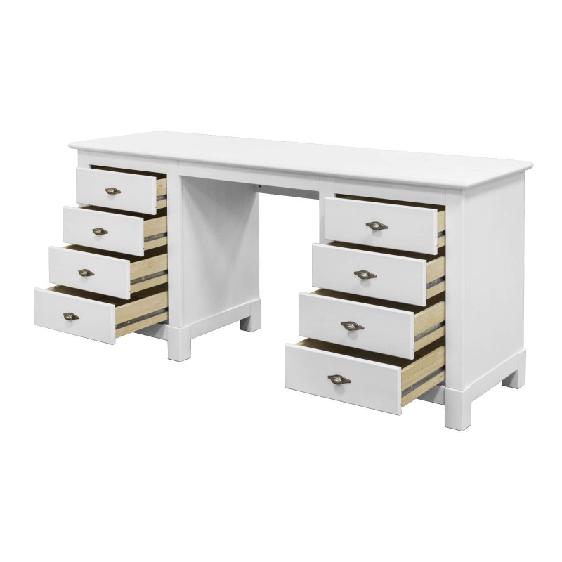 Данная модель отлично впишется в любой современный интерьер. Стол письменный "Рауна" 08 это 2-х тумбовый (белый воск УКВ) из массива сосны - это недорогой письменный стол с ящиками, белый дизайн которого идеален для модного скандинавского стиля. Его можно поставить в кабинете, небольшой квартире-студии или даже комнате малыша. Выполнен полностью из массива сосны.