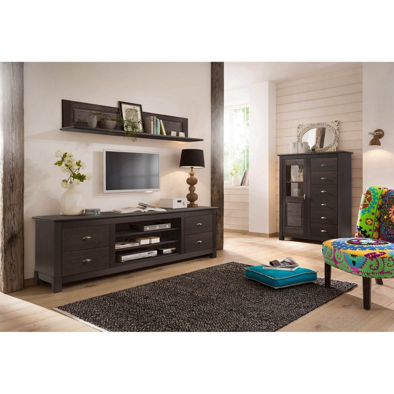 Стильная тумба под ТВ 200 из коллекции «Рауна» станет центральным элементом интерьера спальни или гостиной. Массив сосны - это натуральный дышащий материал. Она оснащена выдвижными ящиками, по два с каждой стороны. Посередине установлены полки для открытого хранения домашних вещей.