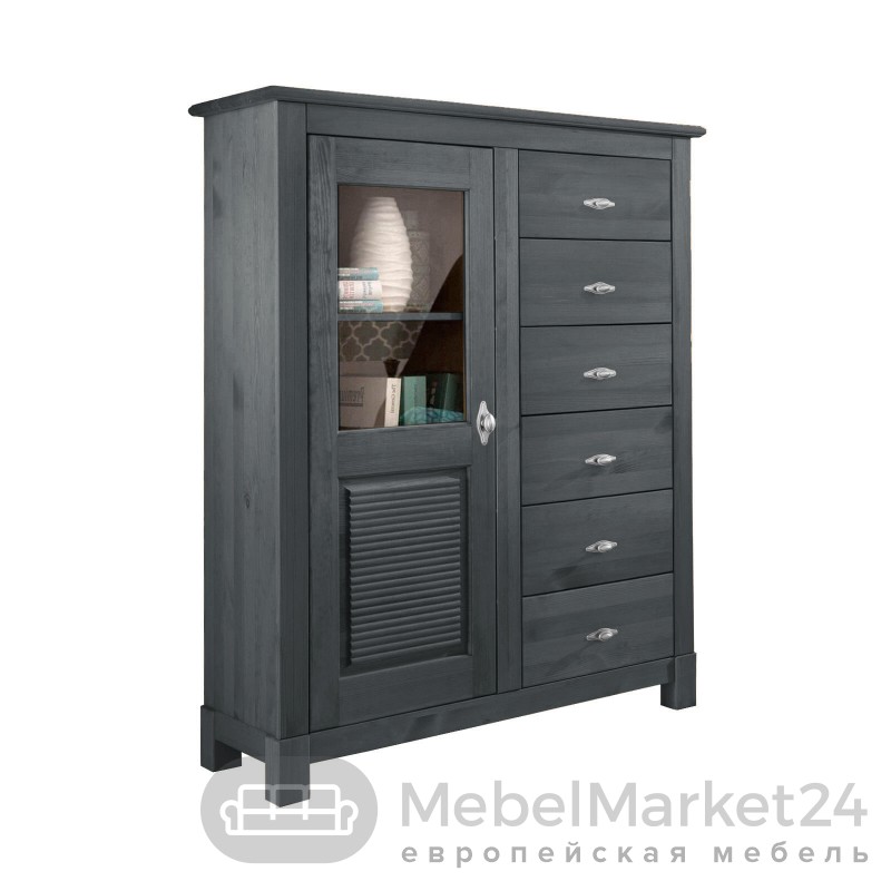 Стильный белый комод из коллекции “Рауна” - сочетание экологичности и простых, но практичных форм. Отлично будет смотреться в гостиной или столовой, оформленных в стиле “кантри” или “сканди”. С одной стороны оснащен тремя полками за навесной дверью, верхняя часть которой декорирована стеклом. С другой - шестью вместительными выдвижными ящиками.