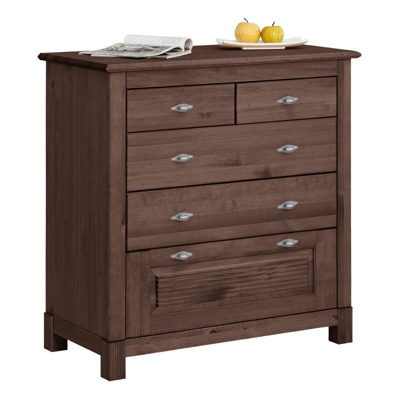 Комоды из коллекции «Рауна» отличаются простым и функциональным дизайном. Эту модель будет хорошо смотреть в спальне, гостиной или просторной прихожей. Три больших ящика и два для повседневных вещей. Удобная поверхность для сувениров, фотографий и других вещей.