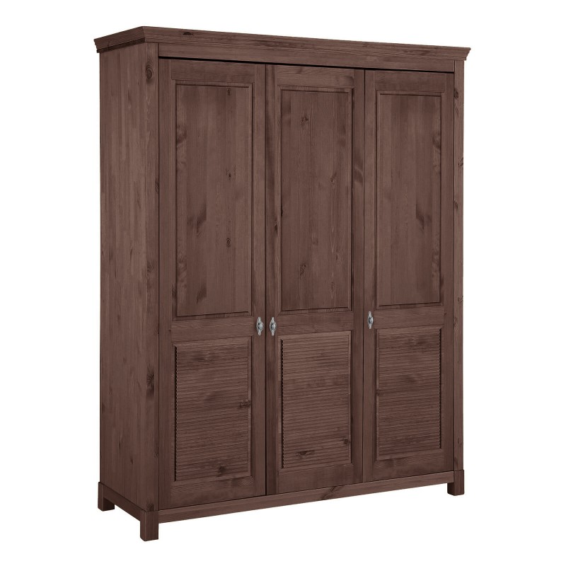 Шкаф для одежды из массива сосны "Рауна" 30 отличается лаконичными формами и стильным исполнением. За соседними распашными дверями имеется место для одежды со штангой и шкаф с 4 полками. Завершает картину эффектная фурнитура «под старину».