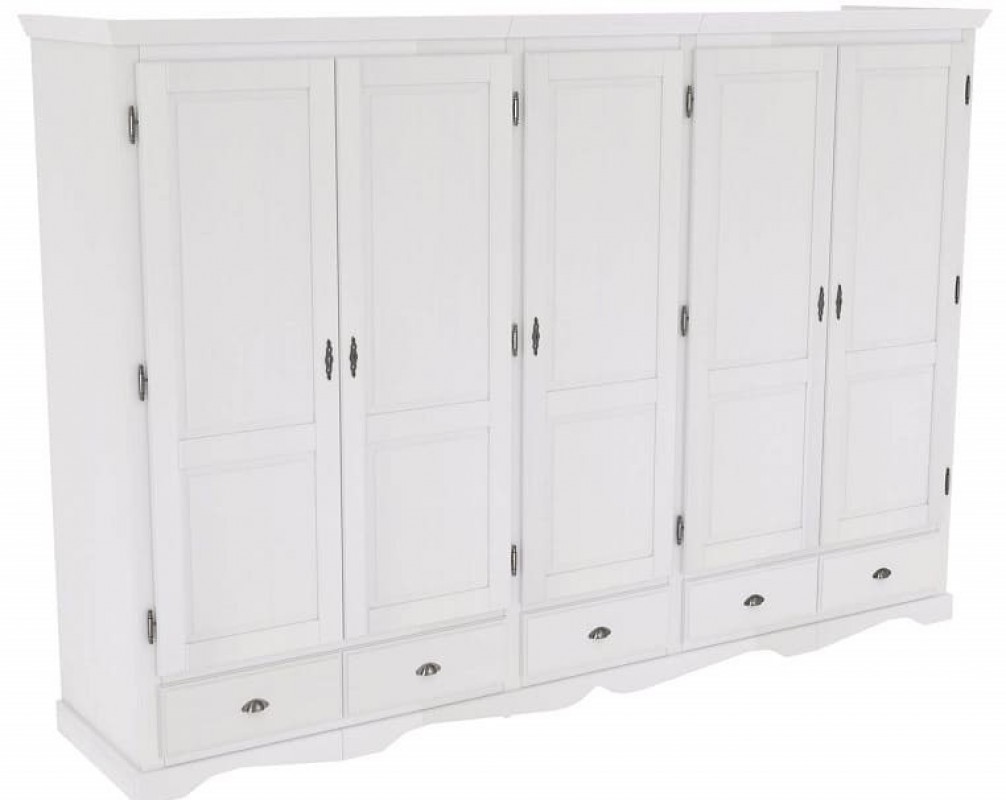 Шкаф из коллекции 55 (белый воск УКВ) поможет сохранить в порядке даже самый солидный гардероб. За 5-ю распашными дверями находится два отделения для одежды со штангой, полки для головной уборки, отделения с 4 мя полками. Это не только практичное, но и безопасное изделие, созданное исключительно из природных компонентов.