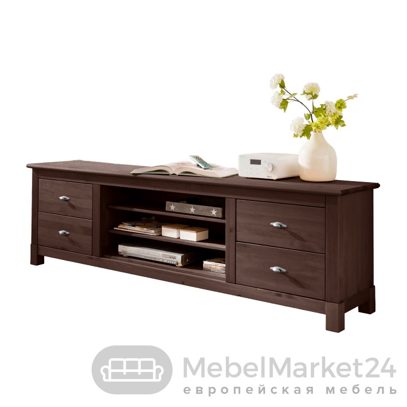 Стильная тумба под ТВ 200 из коллекции «Рауна» станет центральным элементом интерьера спальни или гостиной. Массив сосны - это натуральный дышащий материал. Она оснащена выдвижными ящиками, по два с каждой стороны. Посередине установлены полки для открытого хранения домашних вещей.