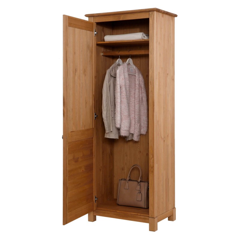 Этот шкаф из коллекции “Рауна” отлично подходит для небольших пространств, используя его максимально эффективно и визуально увеличивая. За одной дверью находится отделение для одежды со штангами и полка для других вещей, включая головные уборы и обувь. Такое изделие удачно впишется в любой современный интерьер.