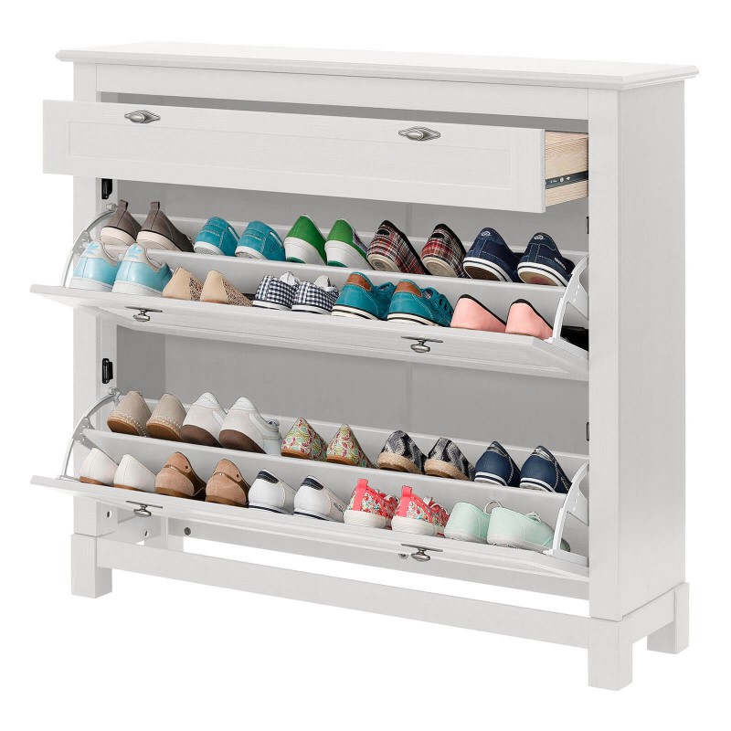 Высокая тумба для обуви “Рауна 21” сохранит в порядке весь ваш обувной гардероб. Она состоит из двух вместительных отделений, над которыми находится выдвижной ящик для мелочей. Подойдет как для прихожей в городской квартире, так и для загородного дома.