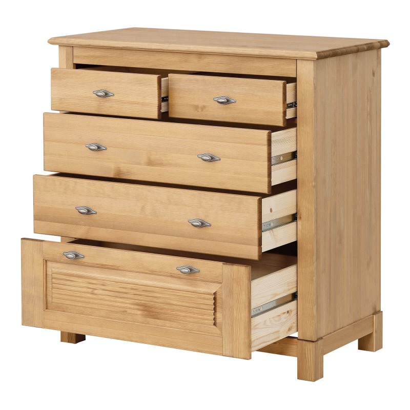Комоды из коллекции «Рауна» отличаются простым и функциональным дизайном. Эту модель будет хорошо смотреть в спальне, гостиной или просторной прихожей. Три больших ящика и два для повседневных вещей. Удобная поверхность позволит вам ссылаться на сувениры, фотографии и другие необходимые вещи.